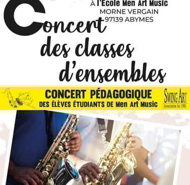 À l'école Men Art Music, les élèves des classes d'ensemble sont engagés dans un projet passionnant qui gravite autour de l'improvisation musicale. Ce projet met en lumière des œuvres jazz et caribéennes, offrant aux étudiants une plateforme pour exprimer leur créativité tout en approfondissant leur compréhension des genres musicaux.